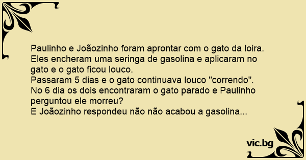 E Joãozinho respondeu não não acabou a gasolina...