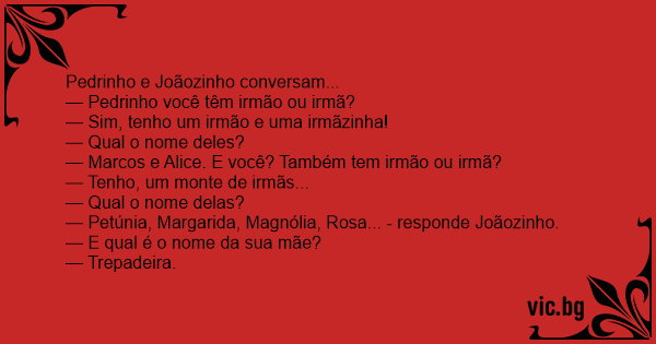 — Petúnia, Margarida, Magnólia, Rosa... - responde Joãozinho.