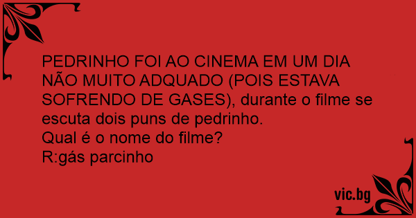 PEDRINHO FOI AO CINEMA EM UM DIA NÃO MUITO ADQUADO (POIS ESTAVA SOFRENDO DE GASES), durante o filme se escuta dois puns de pedrinho.