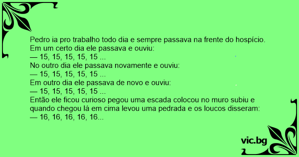 Pedro ia pro trabalho todo dia e sempre passava na frente do hospício.