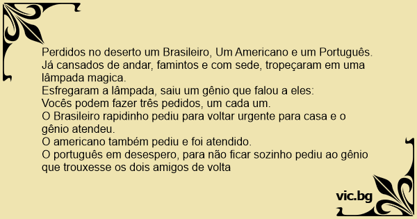 O português em desespero, para não ficar sozinho pediu ao gênio que trouxesse os dois amigos de volta
