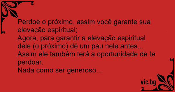 Agora, para garantir a elevação espiritual dele (o próximo) dê um раu nele antes...