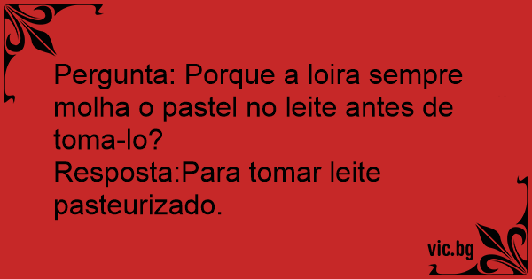 Pergunta: Porque a loira sempre molha o pastel no leite antes de toma-lo?