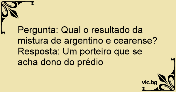 Pergunta: Qual o resultado da mistura de argentino e cearense?