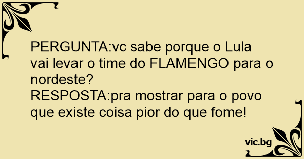 PERGUNTA:vc sabe porque o Lula vai levar o time do FLAMENGO para o nordeste?