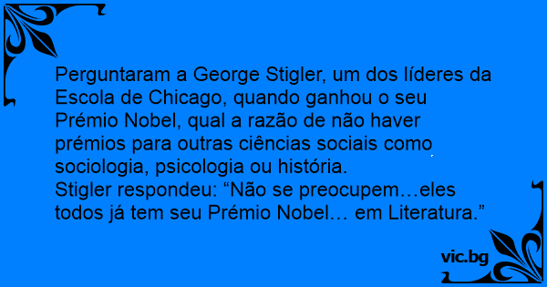 Perguntaram a George Stigler, um dos líderes da Escola de Chicago, quando ganhou o seu Prémio Nobel, qual a razão de não haver prémios para outras ciências sociais como sociologia, psicologia ou história.