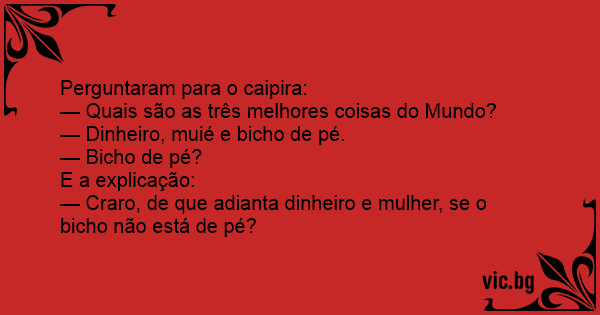 — Craro, de que adianta dinheiro e mulher, se o вiсhо não está de pé?