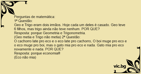 Perguntas de matemática: