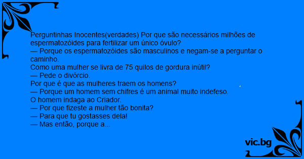 — Porque os espermatozóides são masculinos e negam-se a perguntar o caminho.