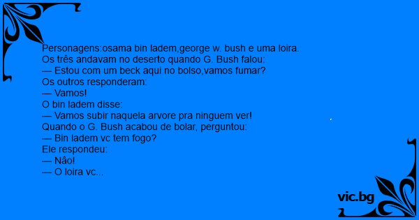 Personagens:osama bin ladem,george w. bush e uma loira.