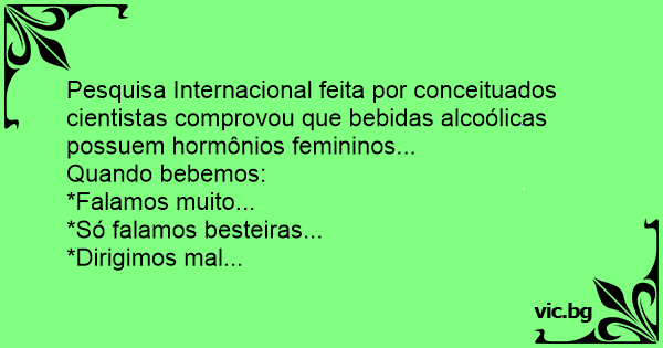 Pesquisa Internacional feita por conceituados cientistas comprovou que bebidas alcoólicas possuem hormônios femininos...