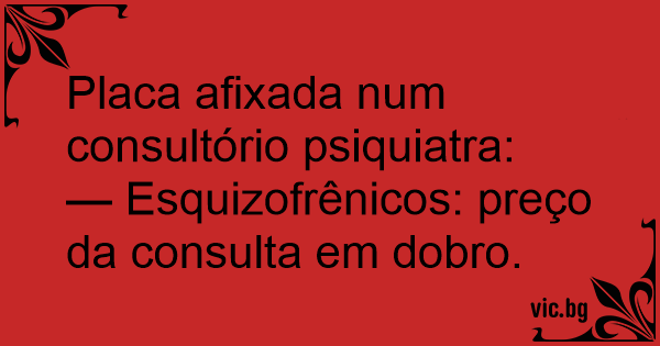 — Esquizofrênicos: preço da consulta em dobro.