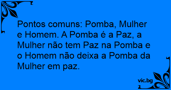 Pontos comuns: Pomba, Mulher e Homem. A Pomba é a Paz, a Mulher não tem Paz na Pomba e o Homem não deixa a Pomba da Mulher em paz.
