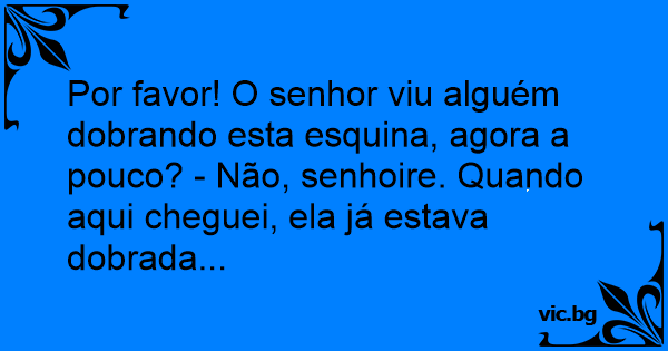 Por favor! O senhor viu alguém dobrando esta esquina, agora a pouco? - Não, senhoire. Quando aqui cheguei, ela já estava dobrada...
