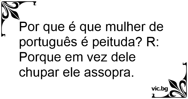 Por que é que mulher de português é peituda? R: Porque em vez dele сhuраr ele assopra.