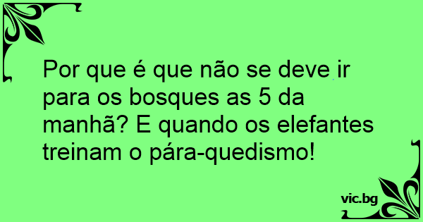 Por que é que não se deve ir para os bosques as 5 da manhã? E quando os elefantes treinam o pára-quedismo!