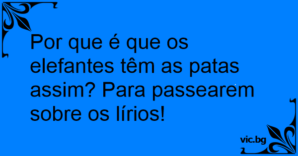 Por que é que os elefantes têm as patas assim? Para passearem sobre os lírios!