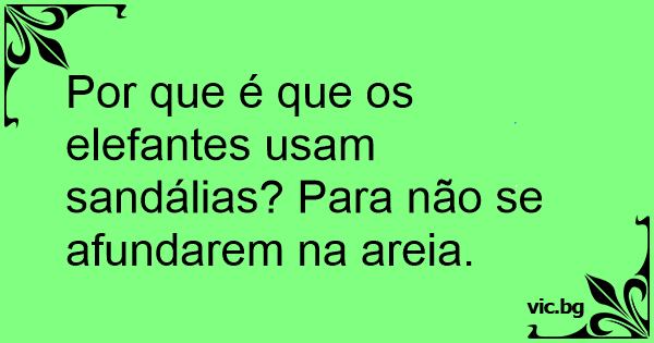 Por que é que os elefantes usam sandálias? Para não se afundarem na areia.