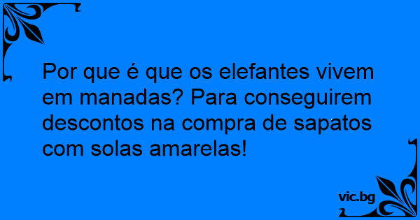 Por que é que os elefantes vivem em manadas? Para conseguirem descontos na compra de sapatos com solas amarelas!