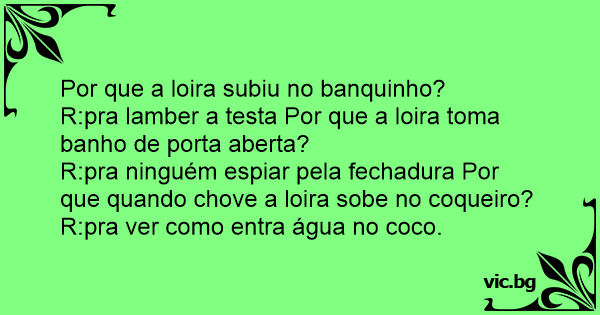 R:pra lamber a testa Por que a loira toma banho de porta aberta?
