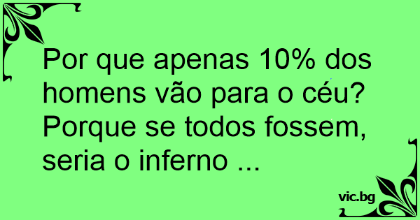 Por que apenas 10% dos homens vão para o céu? Porque se todos fossem, seria o inferno ...