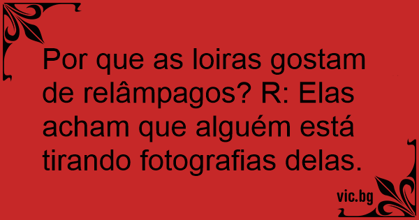 Por que as loiras gostam de relâmpagos? R: Elas acham que alguém está tirando fotografias delas.