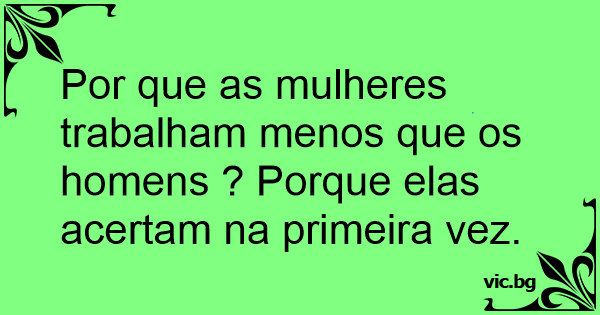 Por que as mulheres trabalham menos que os homens ? Porque elas acertam na primeira vez.