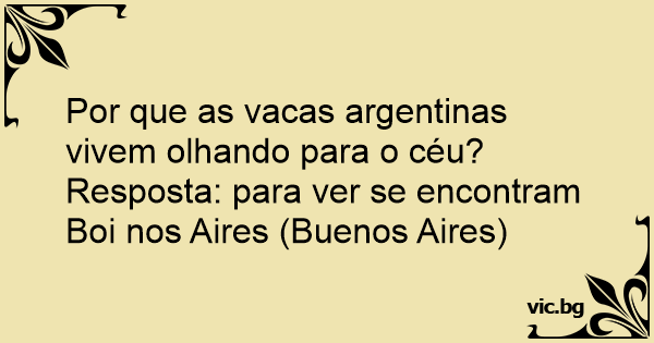 Resposta: para ver se encontram Boi nos Aires (Buenos Aires)