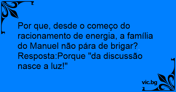 Por que, desde o começo do racionamento de energia, a família do Manuel não pára de brigar?