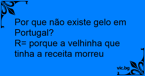 R= porque a velhinha que tinha a receita morreu