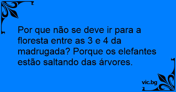 Por que não se deve ir para a floresta entre as 3 e 4 da madrugada? Porque os elefantes estão saltando das árvores.