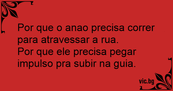 Por que o anao precisa correr para atravessar a rua.<br />Por que ele precisa pegar impulso pra subir na guia.