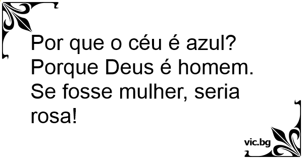 Porque Deus é homem. Se fosse mulher, seria rosa!