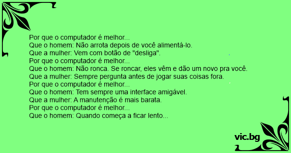 Que a mulher: Se ficar atacado, é só tirar da tomada.
