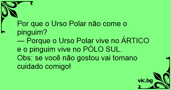 — Porque o Urso Polar vive no ÁRTICO e o pinguim vive no PÓLO SUL.