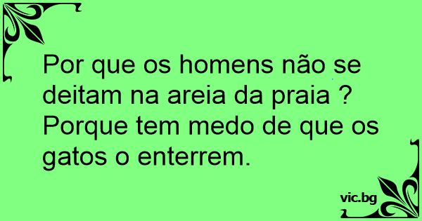 Por que os homens não se deitam na areia da praia ? Porque tem medo de que os gatos o enterrem.