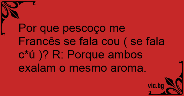Por que pescoço me Francês se fala cou ( se fala c*ú )? R: Porque ambos exalam o mesmo aroma.
