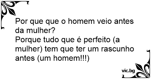 Porque tudo que é perfeito (a mulher) tem que ter um rascunho antes (um homem!!!)