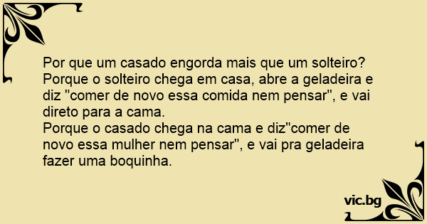 Porque o casado chega na cama e diz"comer de novo essa mulher nem pensar", e vai pra geladeira fazer uma boquinha.