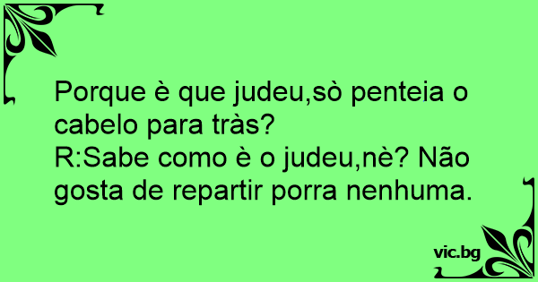 R:Sabe como è o judeu,nè? Não gosta de repartir роrrа nenhuma.