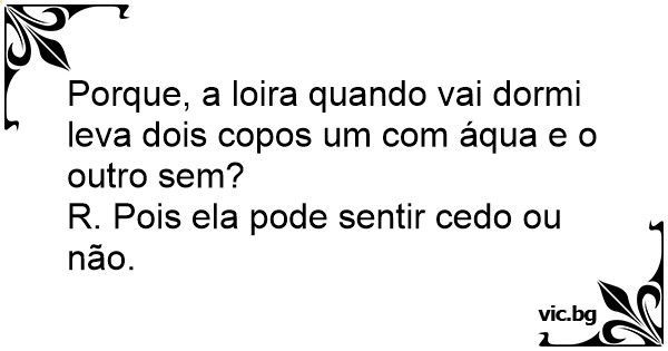 Porque, a loira quando vai dormi leva dois copos um com áqua e o outro sem?