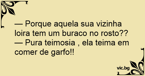 — Porque aquela sua vizinha loira tem um buraco no rosto??
