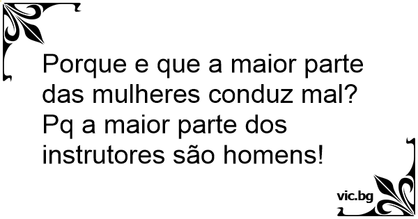 Porque e que a maior parte das mulheres conduz mal? Pq a maior parte dos instrutores são homens!