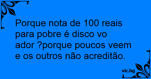 Porque nota de 100 reais para pobre é disco vo ador ?porque poucos veem e os outros não acreditão.