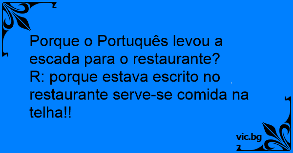 R: porque estava escrito no restaurante serve-se comida na telha!!