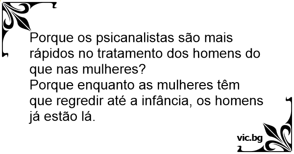 Por que a psicanálise é mais rápida para os homens ? Porque quando dizem para ele voltar à infância, ele já está lá !