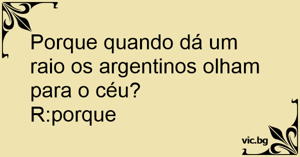 Porque quando dá um raio os argentinos olham para o céu?