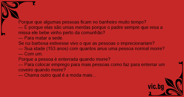 — É porque elas são umas merdas porque o padre sempre que resa a missa ele bebe vinho perto da comunhão?