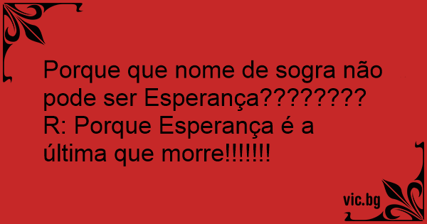 Porque que nome de sogra não pode ser Esperança????????