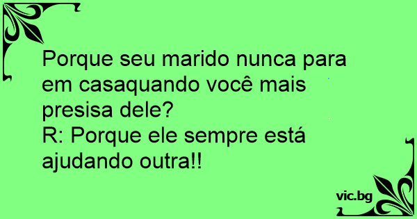 Porque seu marido nunca para em casaquando você mais presisa dele?